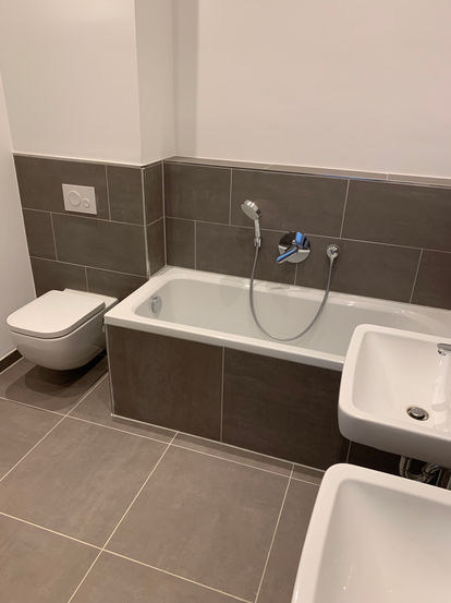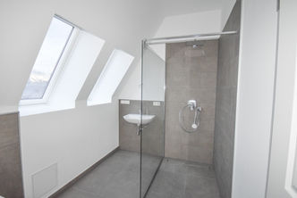 Highlights sind großformatige Fliesen, Deckenspots sowie hochwertige Laminatböden in allen Wohnungen